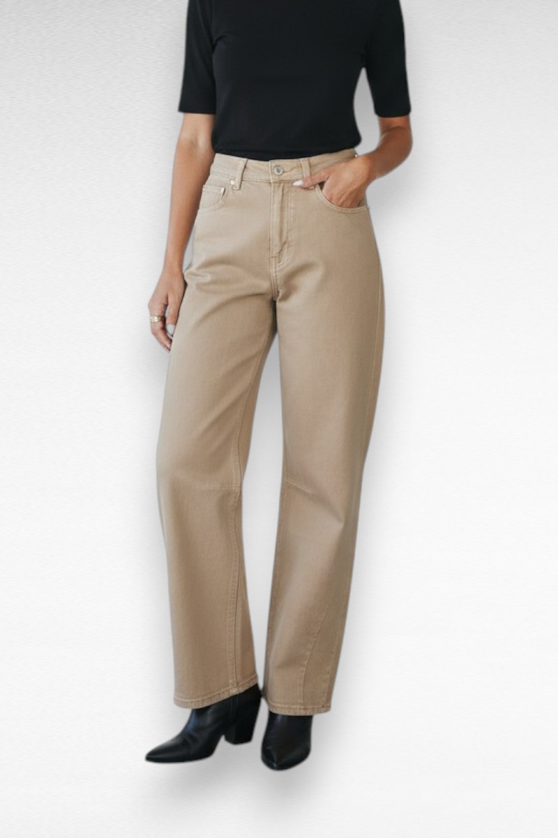 Deze beige barrel jeans is dé perfecte mix van stijl en comfort! De barrel fit geeft een speelse, moderne look met iets wijder vallende pijpen die subtiel toelopen. Dankzij de stretch denim zit hij heerlijk en beweegt hij met je mee — ideaal voor elke dag.