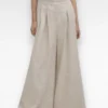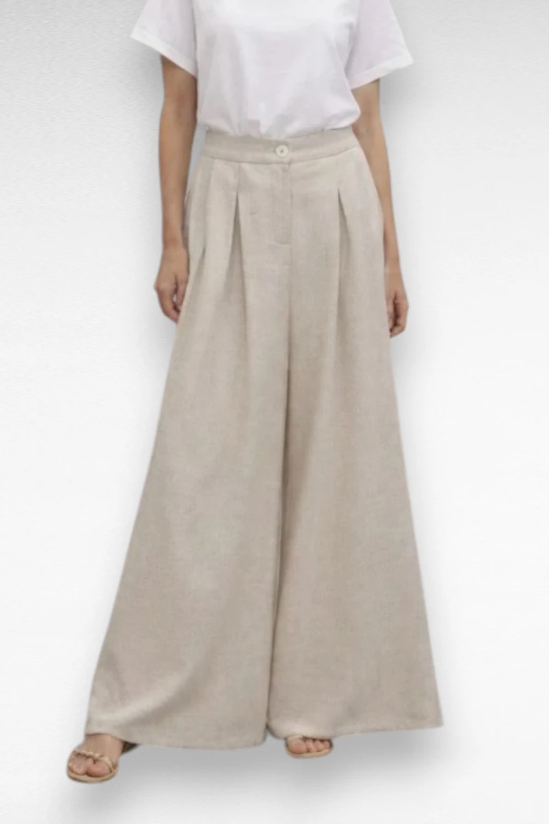 Deze stijlvolle wijde pantalon in een zachte beige tint is een echte must-have voor een elegante en comfortabele look. De soepelvallende stof zorgt voor een mooie flow bij elke beweging, terwijl de hoge taille en plooien aan de voorkant een flatterend silhouet creëren.