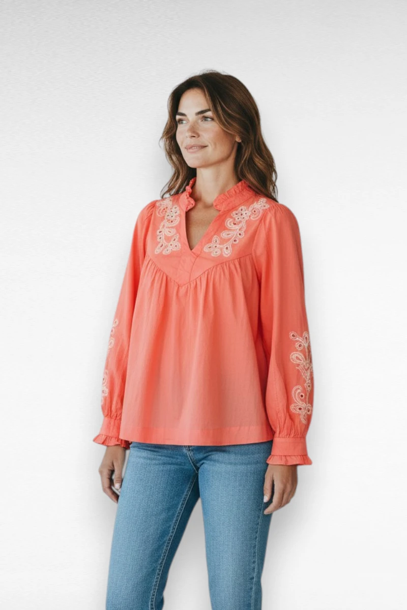 Voel je geweldig in deze prachtige blouse met borduursel . Perfect voor een casual dagje uit of een speciale gelegenheid.