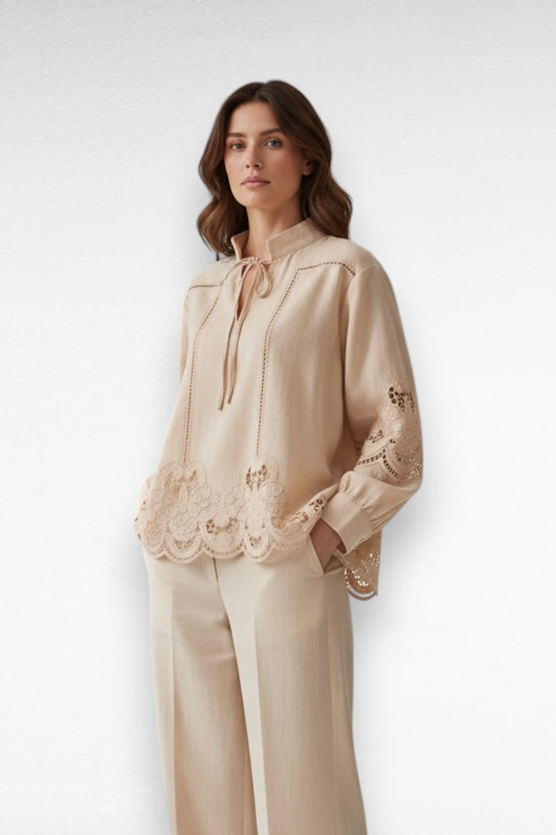 Voel je elegant en stijlvol in deze prachtige blouse met kantdetails . Perfect voor zowel casual als formele gelegenheden.