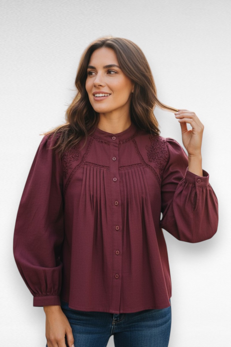 Voel je stijlvol en comfortabel in deze prachtige donker rode blouse . Perfect voor elke gelegenheid, van casual tot chic.