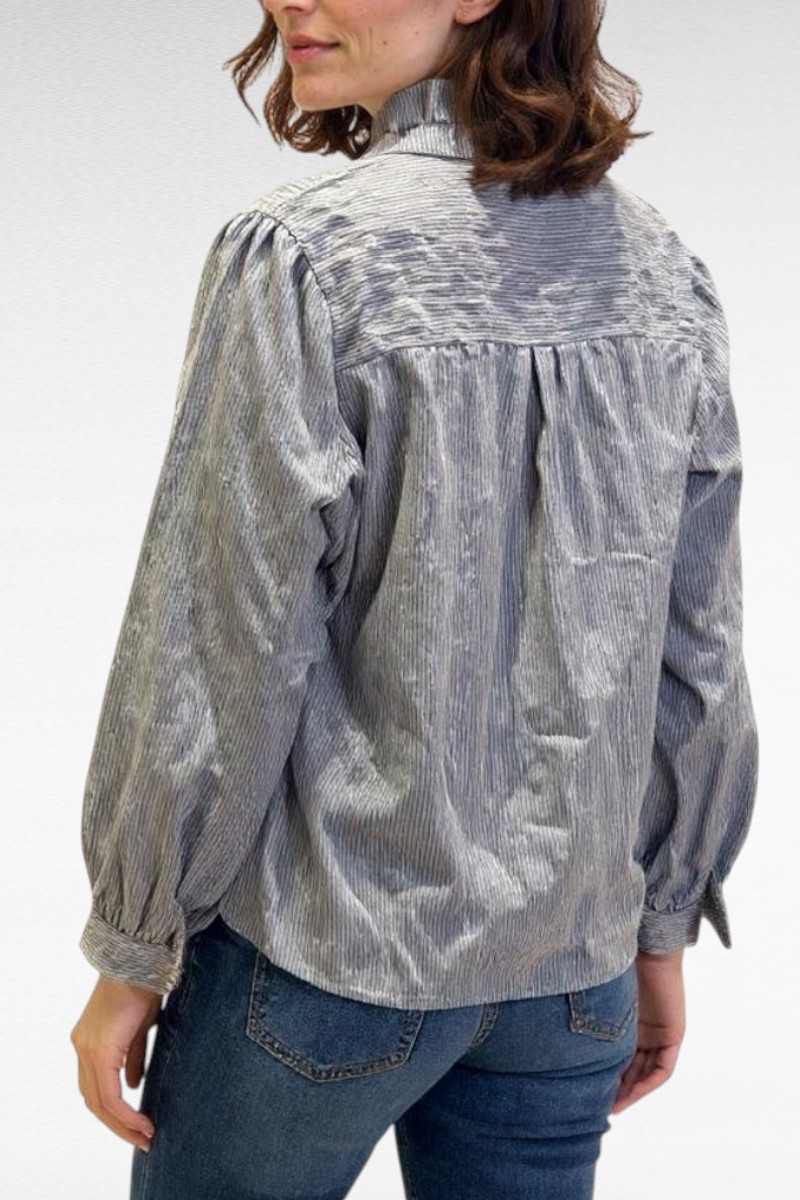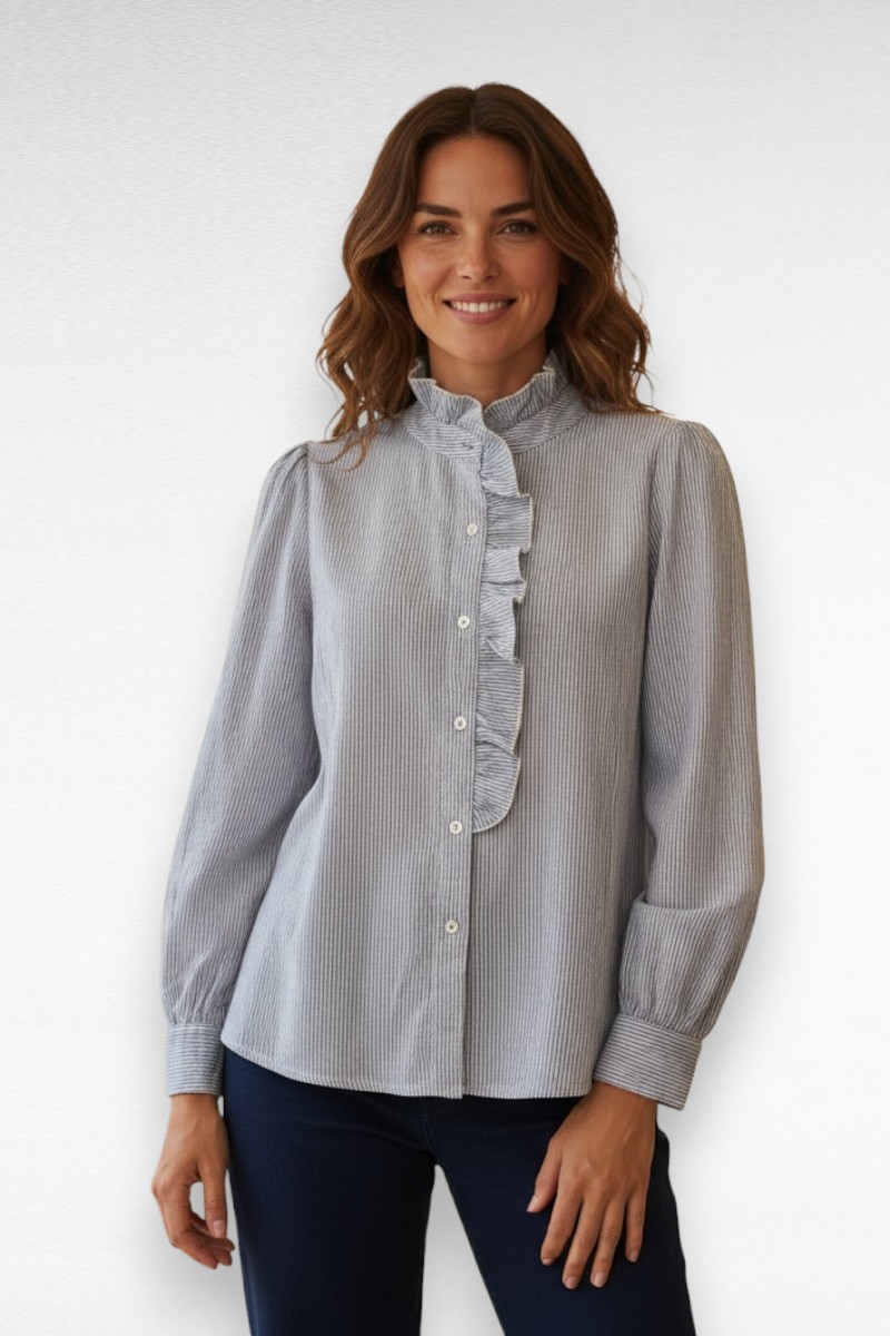 Voel je elegant en comfortabel met deze prachtige licht blauwe blouse met ruches . Perfect voor elke gelegenheid.