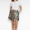 Ga voor een stijlvolle, opvallende look met deze glanzende bloemenrok in prachtige tinten turquoise, koper en champagne. De rijke structuur en subtiele glans geven de rok een luxe uitstraling, perfect voor feestdagen, etentjes of een chique dagelijkse outfit.