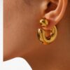 Deze gouden stainless steel oorbellen zijn de perfecte mix van modern en chic. De ronde oorring met een speels bolletje aan de bovenkant geeft jouw look net dat beetje extra — stoer, vrouwelijk én tijdloos tegelijk.