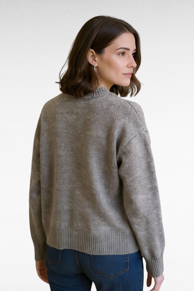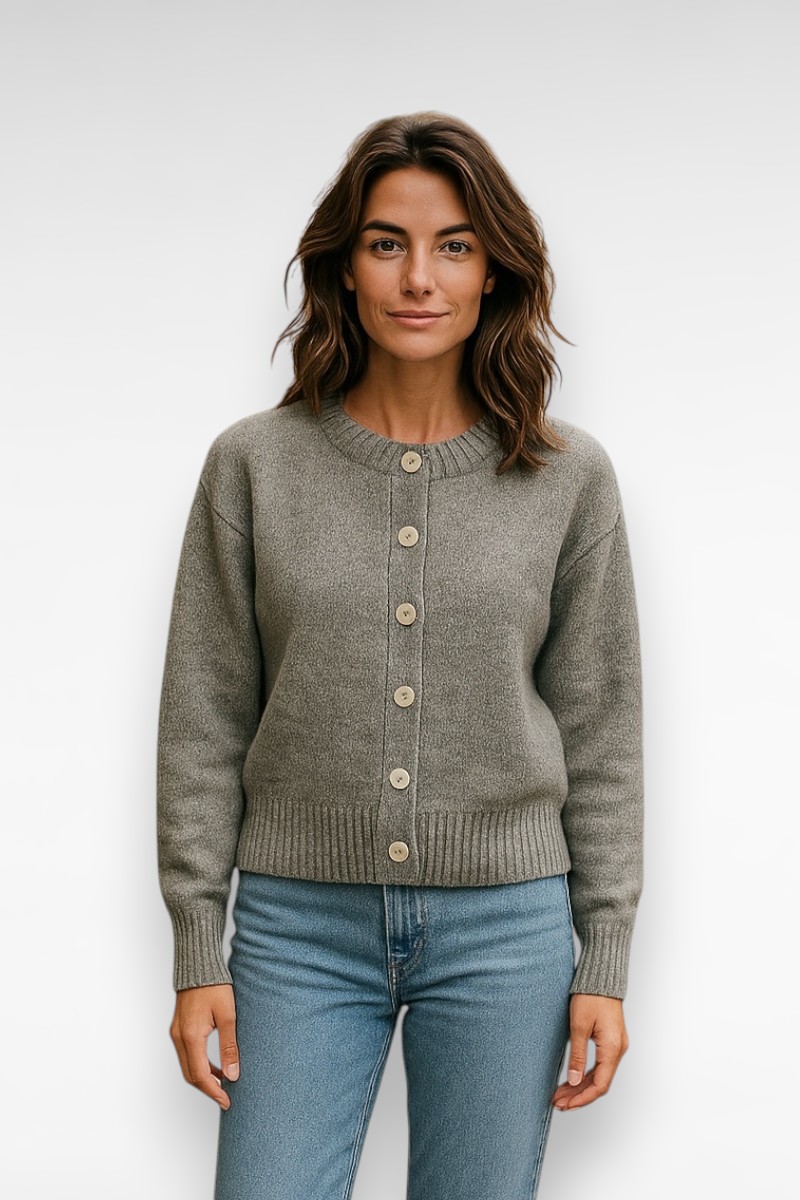 Grijs gemêleerd dames vest. Fijn gebreid en super zacht. Korter model.