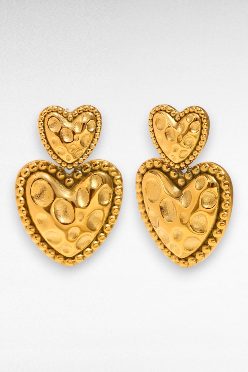 Deze gouden hart oorbellen zijn een stijlvolle musthave voor iedere sieradenliefhebber! De oorbellen hebben een prachtig dubbel hartdesign met een subtiele structuur en een glanzende 18K gold plated afwerking. Dankzij het duurzame stainless steel materiaal blijven ze mooi van kleur en zijn ze geschikt voor dagelijks gebruik.