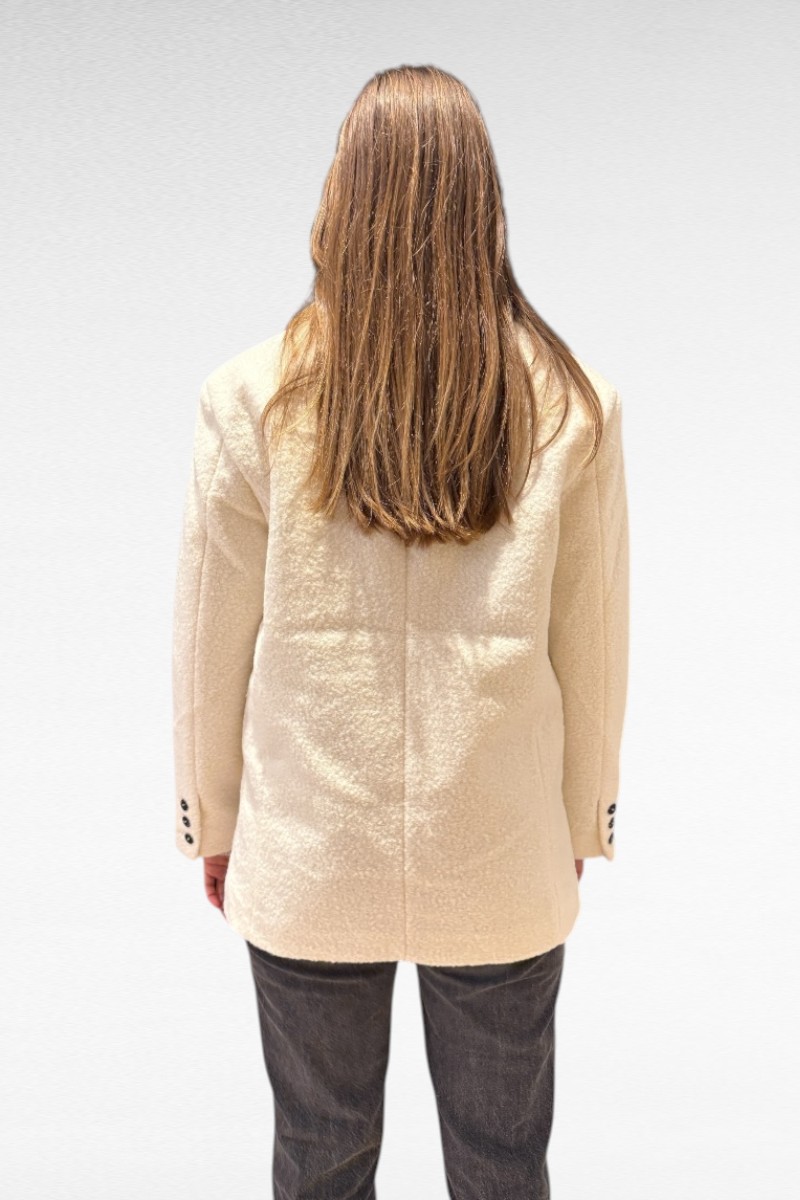 Voel je stijlvol en zelfverzekerd in deze prachtige ecru teddy jas met een blazer model. . Perfect voor elke gelegenheid en seizoen.