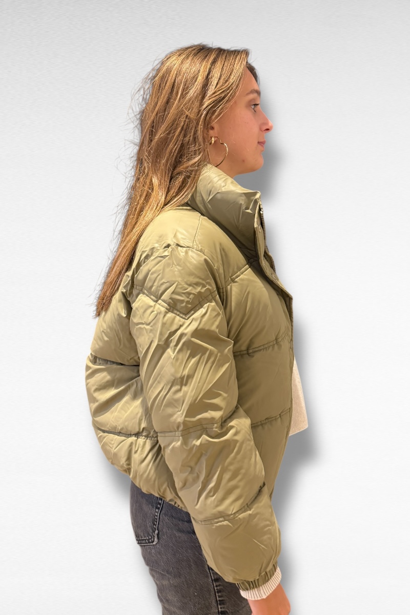 Voel je stijlvol en warm in deze groene prachtige bomber jas . Perfect voor koude dagen en een casual look.