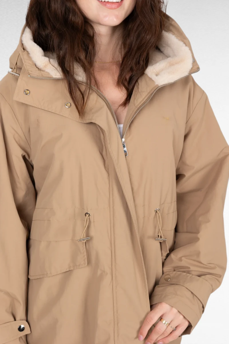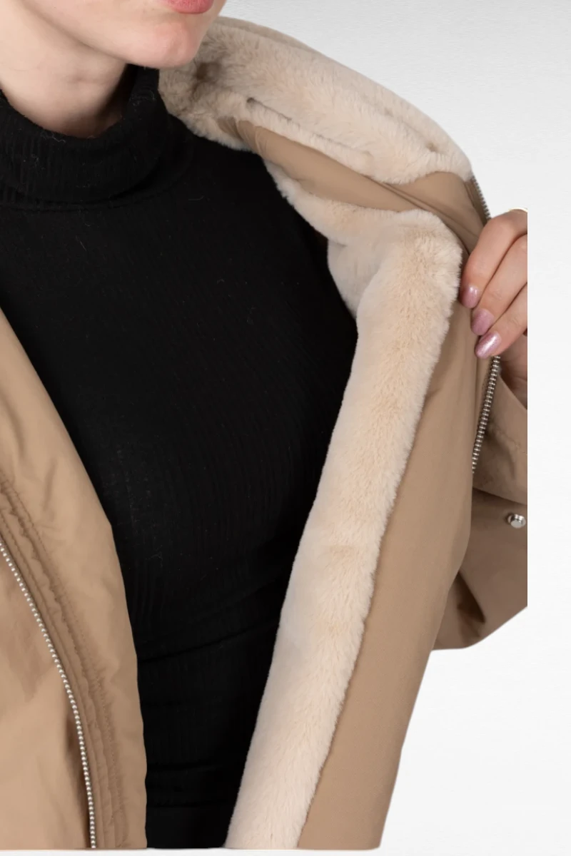 Ontdek de perfecte jas voor elk weerstype . Voel je stijlvol en comfortabel in deze veelzijdige jas. Gevoerd met fur en met capuchon.