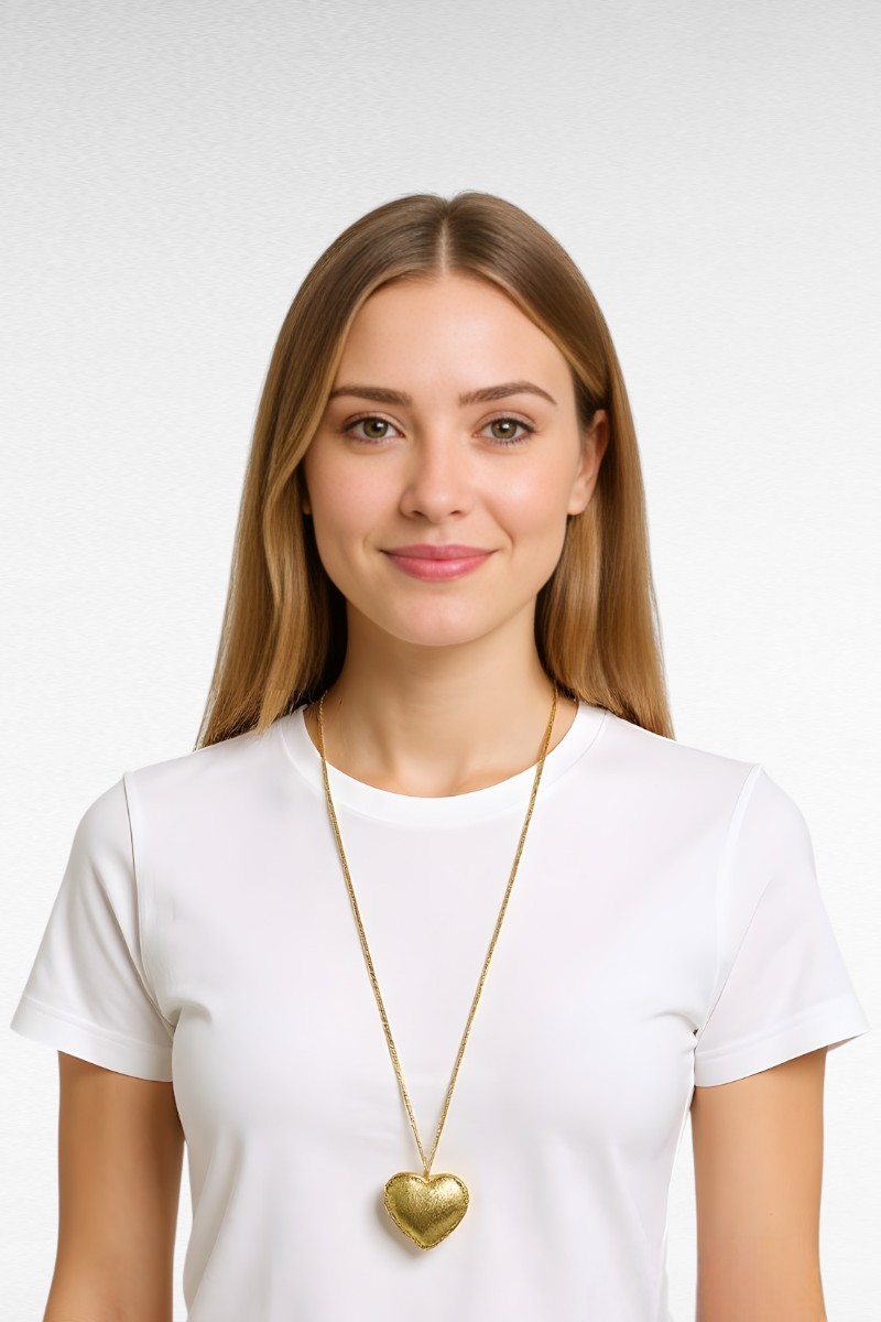 Gouden lange ketting met hartjes bedel. Maak je outfit compleet met dit prachtige sieraad.