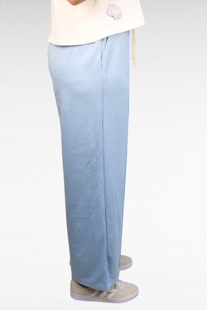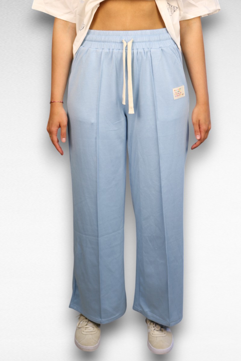 Deze trendy lichtblauwe joggingbroek is het perfecte balansje tussen comfy en chic! De zachte, luchtige stof geeft je alle comfort van een joggingbroek, maar het nette model en de strakke snit maken ‘m stijlvol genoeg voor een dagje stad. Met de elastische tailleband en het verstelbare koord creëer je altijd de perfecte pasvorm. De wijde pijpen geven een moderne en trendy look aan je outfit. Het subtiele labelje aan de zijkant voegt een speels detail toe. Combineer met een crop top voor een zomerse vibe of met een oversized shirt voor een casual look. Deze veelzijdige broek is een musthave voor je garderobe!