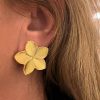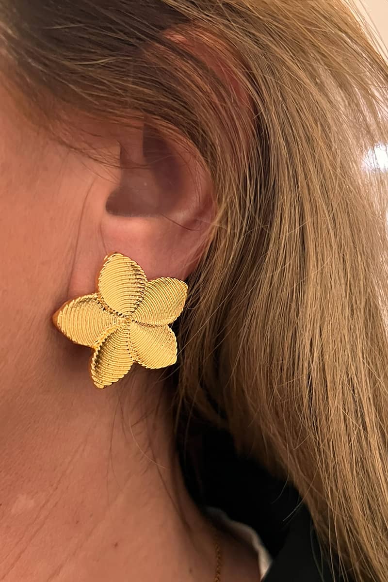 Een gouden bloem oorknop. Deze prachtige oorbellen zijn 3cm doorsnede en zijn een mooie subtiele blikvanger. Te combineren met iedere outfit style zowel stoer als chic.
