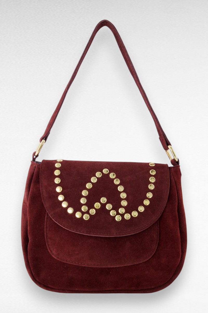 De flap is afgewerkt met stijlvolle bronskleurige studs, wat de tas een unieke en luxe uitstraling geeft. Binnenin vind je een ruim hoofdvak met extra ritsvak, ideaal voor het veilig opbergen van je essentials zoals sleutels, telefoon en portemonnee.