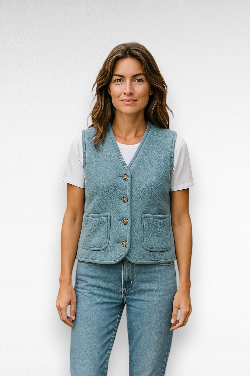 Voel je stijlvol en comfortabel in dit prachtige licht blauwe teddy gilet . Perfect voor elke casual gelegenheid.