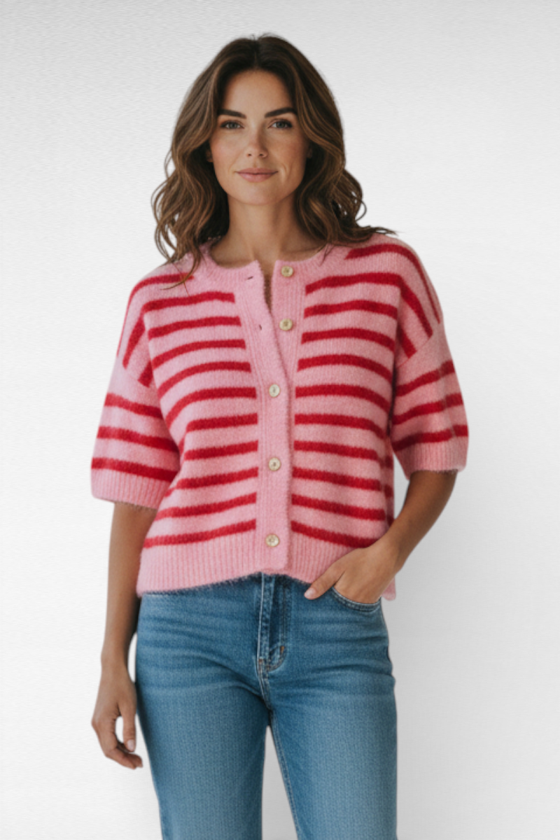 Voel je fantastisch in dit vrolijke korte mouw vest met strepen . Perfect voor een casual dagje uit of een gezellige avond.