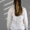 Laat de lente binnen met deze schattige witte blouse met gele madeliefjes! 🌼 De speelse groene blaadjes tussen de bloemetjes maken het design extra vrolijk en fris. De romantische ruches bij de hals en de lieve pofmouwen geven deze blouse een heerlijk zachte uitstraling. Gemaakt van luchtige katoenen stof, perfect voor warme lentedagen! Het bloemenpatroon is subtiel maar vrolijkt elke outfit meteen op. Draag hem op een spijkerbroek voor een gezellige lentelook, of combineer met een rokje voor een feestelijke touch. De ruches langs de knopenrand maken deze blouse extra bijzonder! Floor draagt maat M.