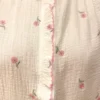 De fijne details zoals de opstaande kraag met ruffle randje en de sierlijke afwerking langs de knoopsluiting geven de blouse een elegante en zachte uitstraling. De kleine roze bloemetjes zorgen voor een frisse en speelse touch.